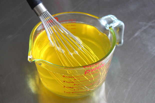 Vierta uniformemente en las tazas con una taza de medir - este material es pegajoso si usted lo derrama.
