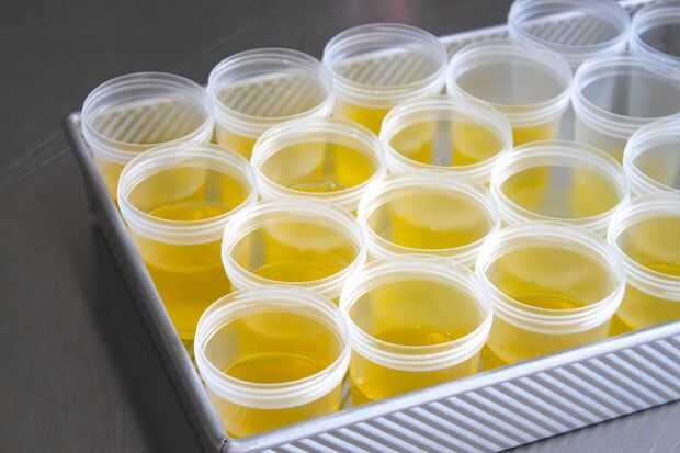 Asegúrese de mantener el vodka en el congelador hasta que esté listo, luego mida dos tazas vale la pena y mezclar con la gelatina. Debe ser agradable y claro - sin grano restante!