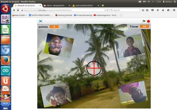 Estoy empezando a aprender programación de Scratch, por lo tanto he remezclado al original juego de disparos de fantasma para foto Shooting juego hacer algo personal e interactivo. Aquí está mi juego, siéntase libre para jugar! https://Scratch.MIT.edu/projects/74444678/