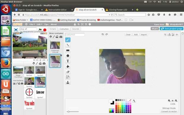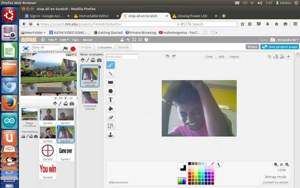 Cuando hace clic en bandera verde --> cambiar de traje a costume1--> Mostrar --> para siempre-->mover 10 pasos