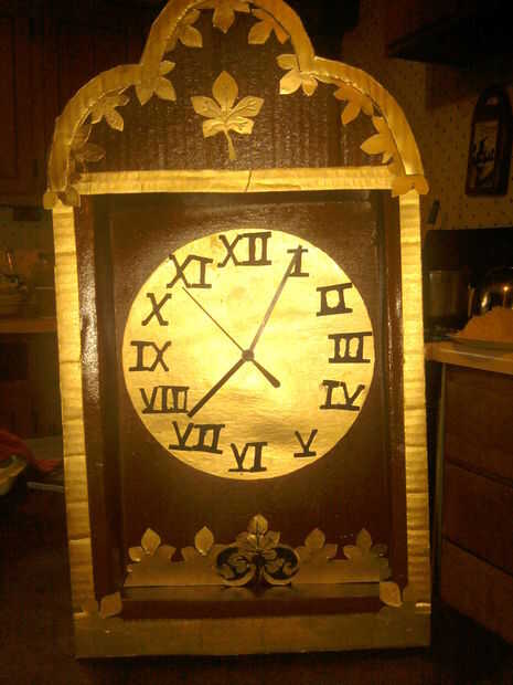 esto es un apoyo que hice para la casa embrujada de la escuela primaria de mi hija, que corro con mi marido. El reloj está hecho de cheapo thrift store reloj y reproductor de casete de un niño viejo. Muestra 13:00 y la mano minuta gira hacia atrás.Pa