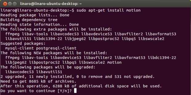 Escriba el comando: sudo apt-get instalar motion