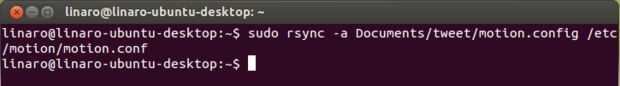 Escriba el comando: sudo rsync - un Documents/tweet/motion.config /etc/motion/motion.conf