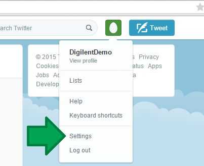 En la parte superior derecha habrá un botón verde con un huevo en el medio. Haga clic en el botón de huevo, luego cuando aparece el menú desplegable, haga clic en la opción de configuración , esto nos llevará a las opciones de uso de su cuenta de Twitter.