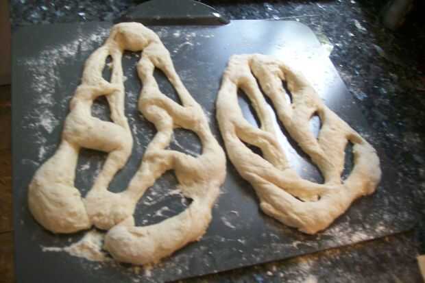 Para el panT 65 harina 1 kg14 g de sal por kg de harina600 ml de agua tibia2 paquetes de levadura fresca para panLa imposibilidad de tener levadura casera (protector de una pequeña masa de amasado anterior, para fermentar la mezcla siguiente) puede s