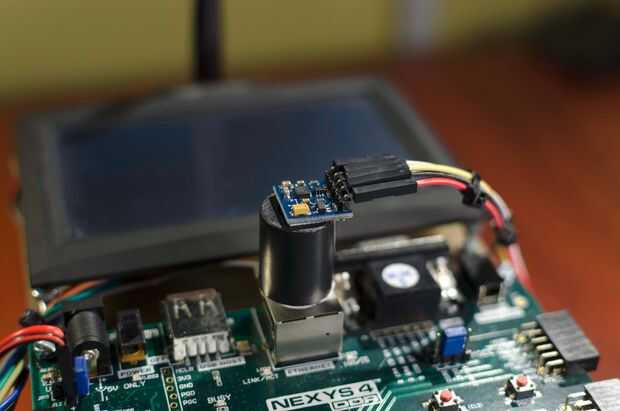 Con el fin de eliminar la deriva mecánica mientras que la primera plataforma se mueve hacia adelante o hacia atrás y también permiten una medición precisa y el control del ángulo de rotación al tiempo que la plataforma gire a la izquierda, derecha o 180 grados, un magnetómetro de 3 ejes HMC5883L (o brújula digital) fue integrado en el diseño. Medir la fuerza del campo magnético en el eje X e Y, y aplicando una operación arctan2() (también conocido como arctan(x/y)), una dirección de norte magnético puede calcularse.