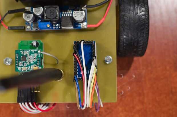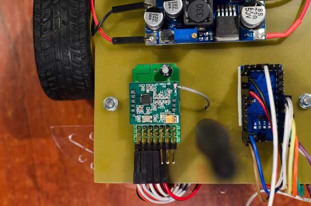 Estos módulos de 2,4 GHz RF fueron rescatados de un control remoto y seguir estándar 50Hz (y tiempo de alta de 1 a 2 ms) señales PWM en hobby-grado analógico controlado por motores y servomotores.
