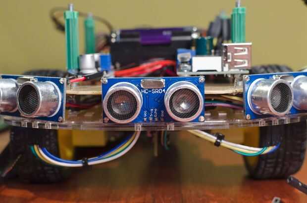 Los ultrasonidos HC-SR04 desde módulo proporciona función de medición sin contacto de 2cm - 400cm, con precisión de hasta 3mm. Los módulos incluye circuito transmisor, receptor y control ultrasónico. Para medir distancia, debía aplicarse el siguiente protocolo: pin «Desencadenante» se tira alto 10us (el módulo envía ocho 40 kHz), y después el módulo recibe la señal de pulsos hacia atrás, saca el pasador de "Eco" para un tiempo de 1uS por 58 centímetros en la distancia medida.