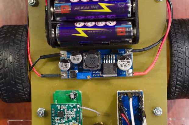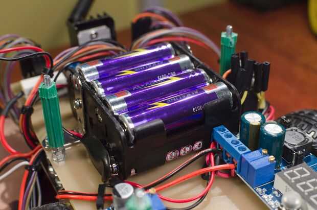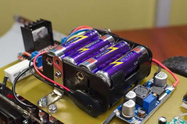 Se trata de un soporte de batería estándar capaz de llevar ocho AA (R6) 1,5 v pilas alcalinas, suministrando el riel de 12V voltaje requerido por los dos convertidores DC-DC y el controlador de motor.