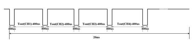 Este receptor convierte la señal recibida en cuatro canales separados, implementación de 50Hz, 1 a 2 ms hora de PWM.