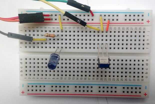 El dispositivo de salida, el LED infrarrojo, parpadeará según el envío de señal a él después de que el temporizador está para arriba.