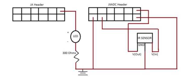 Use el esquema adjunto para configurar el circuito LED infrarrojos y Sensor.