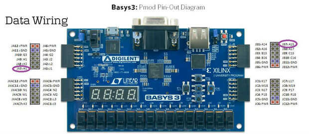 Diagrama del Pinout de BASYS 3 cortesía de:
