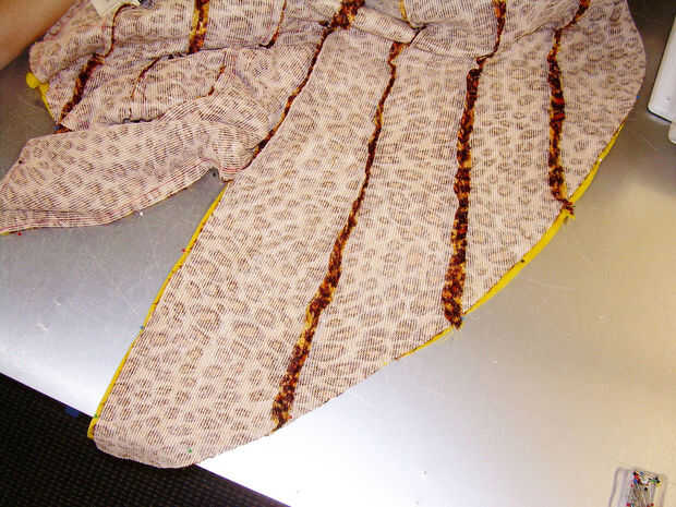 No importa si los bordes no coinciden exactamente en las colas, es más importante que las dos cáscaras se cuelgan en la misma longitud. Puede tomar estirar un poco y un par de intentos para pillarle el truco correcto, pero mejor ahora que después ha cosido juntos! No te preocupes sobre los fondos de las costuras de forro encima, probablemente será un poco apagado.
