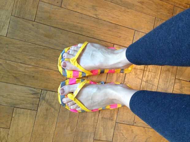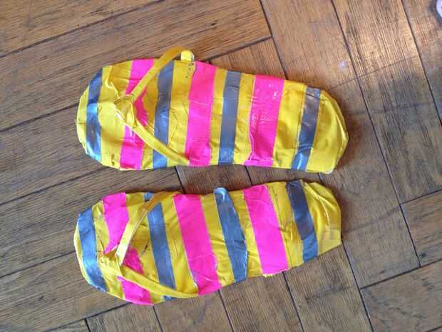 fracasos de tirón de cinta de conducto son grandes para caminar justo fuera así que no te los pies o calcetines sucios.Recientemente surgió el patrón y creo que es muy como estar descalzo!Paso 1: medición Medir cuánto es su pie y añadir una pulgada y