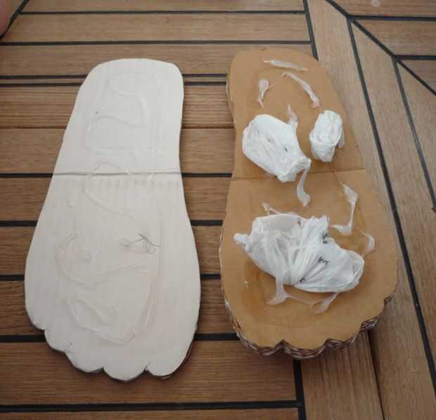 Un montón de pegamento se aplican a ambos lados de cada capa de zapato y presione firmemente juntos.