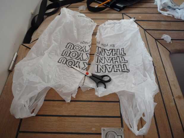 Haz tus dos bolsas de plástico y cortar cada uno como se muestra en la imagen.