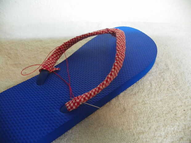 Si desea coser 2 tiras para que sea lo suficientemente largo, coloque la costura en el centro para que la flor de la tela lo cubrirá.