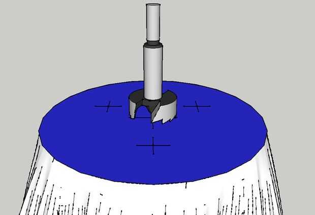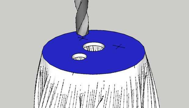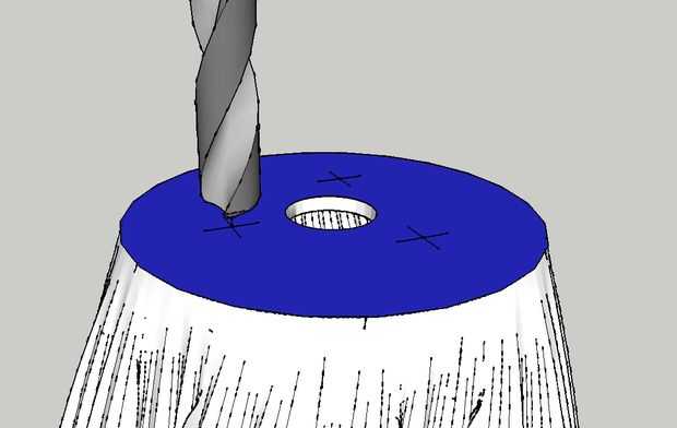 La plantilla de papel en el fondo del Jarrón con pegamento del pegamento, es fácil de quitar luego con un bisturí después de todo. Perfore el agujero central con una broca de mm y el exteriores tres agujeros con una broca de 6mm.