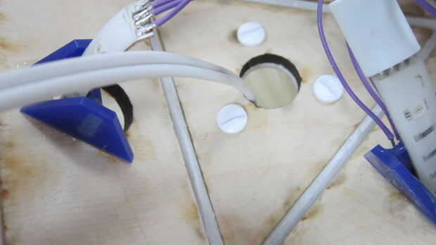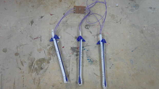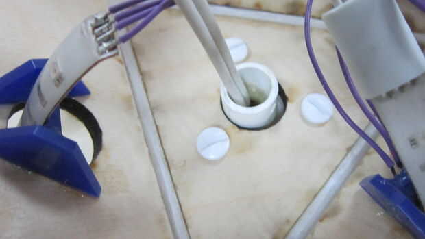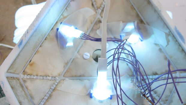 Tomar los tres dedos LED completados del paso 8 y prueba para asegurarse de que funcionan. Cola les en lugar con Araldite pero mantener dado vuelta para hacer que nada va mal último minuto (me salvado de un fracaso de canal azul en uno de los segmentos).