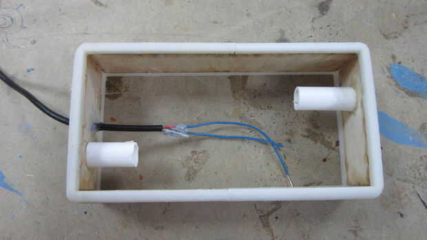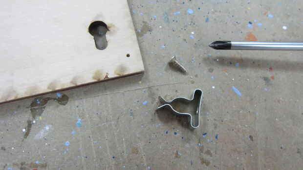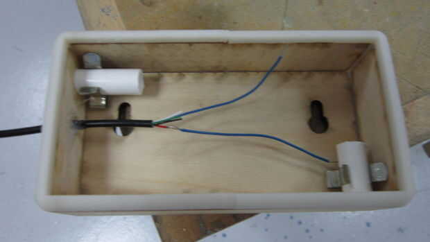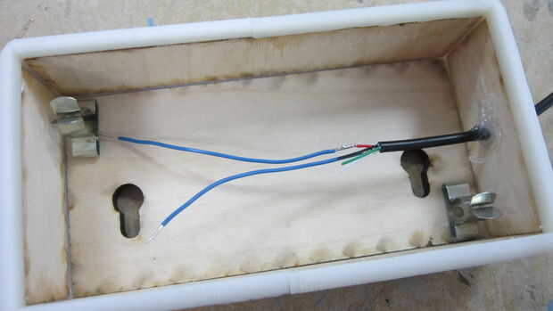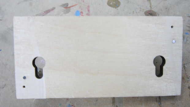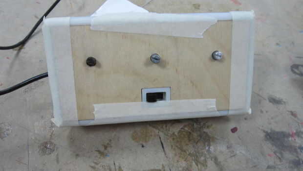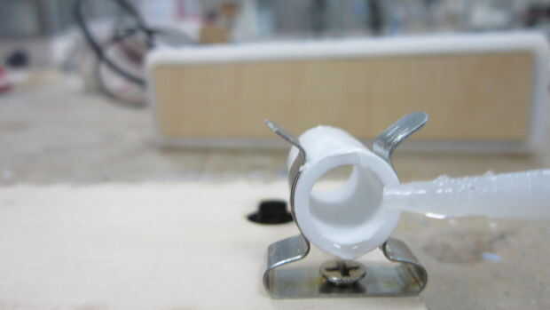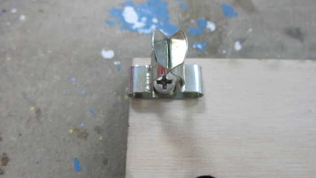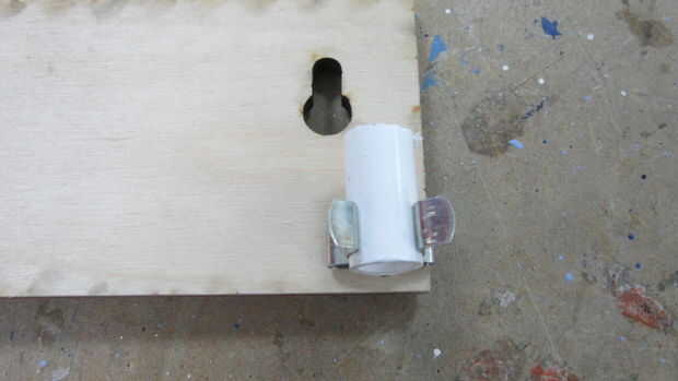 Para hacer el panel posterior extraíble usé clips demasiado. Primero coloque los clips en el panel como se muestra y marque el centro de la mancha con un lápiz. Luego taladre el agujero con una broca de 2mm y tornillo de la pinza demasiado en su lugar con un tornillo pequeño para madera. Luego cortar el tubo de PVC de 13mm por la mitad y colocar la pieza en el clip también. Cubrir el extremo con Araldite, coloque el panel posterior en el marco y presione el tubo en el panel lateral.