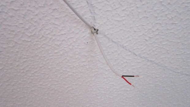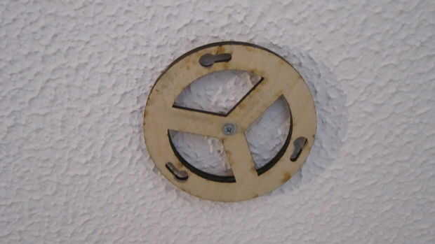 Usted necesitará un cable pelado colgando desde el techo y un enchufe en el techo. Un tornillo, arandela (opcional) y la fijación del anillo y atorníllelos en el techo como se muestra. Conecte el cable al bloque conector blanco y Monte la lámpara. Debe ser increíblemente fácil debido a la diferencia de 2 mm.