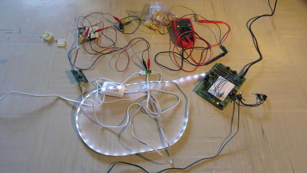 Detenido un glitch que noté después de haber construido mi circuito era que el LED parpadean constantemente como el mando a distancia estaba en pero cuando no era el parpadeo. Deduje de ello que la constante paquetes de RF del mando a distancia interrupción el flujo del código en el extremo receptor. Esto no debería ser posible porque pwmout es una rutina de fondo constante que cambia sólo cuando se especifica a. De todos modos, para solucionarlo reprogramado el extremo receptor para tener un ciclo de trabajo mucho menor y que ha solucionado el problema.