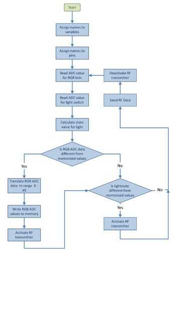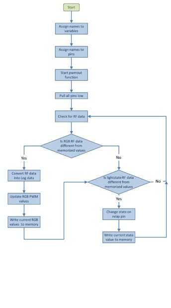 El código para el receptor y el mando a distancia tienen funciones IF para comprobar si los nuevos datos (valor RF o ADC) están diferentes de la anterior. Esto deja el micro controlador de ir a través de lazos innecesarios en el código y por lo tanto hace más sensible. Los archivos .bas están en la carpeta zip con todos los archivos de la lámpara.