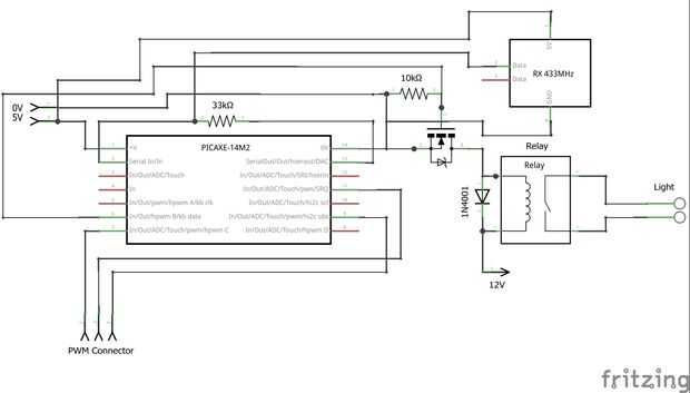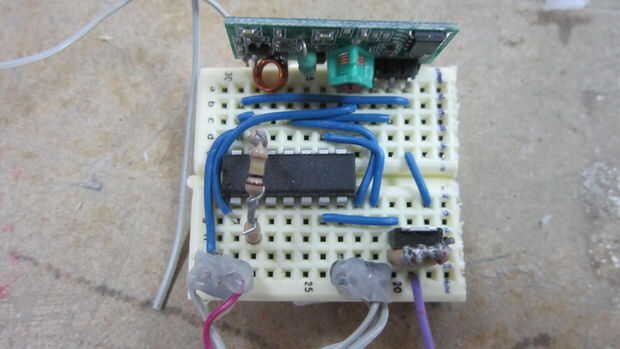 - 1 PICAXE 14M 2 chip programado con código receptor