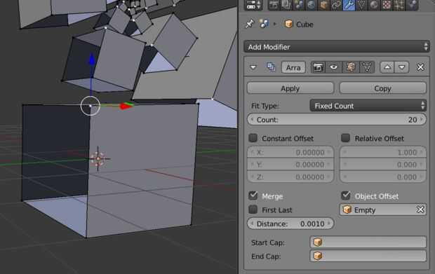 5. set fusión en el Panel de modificador de matriz: activar la casilla de verificación 'fusionar' hará vértices en el fusible de distancia fija. Cuando el modificador se aplica (al final) el objeto será una malla contigua. Una alternativa es utilizar sólo vértice ajustar para asegurar que los vértices son exactamente en el mismo lugar y después de aplicar el modificador utilizan el comando 'eliminar dobles' para combinar con eficacia cualquier vértices coincidentes. Tenga en cuenta que si establece la distancia a la fusión de alta, puede combinar cosas que no desea la intención. Esto es especialmente importante con escala de matrices con elementos muy pequeños.