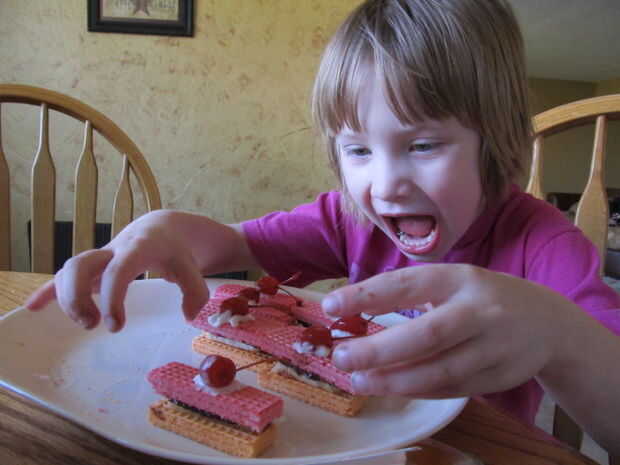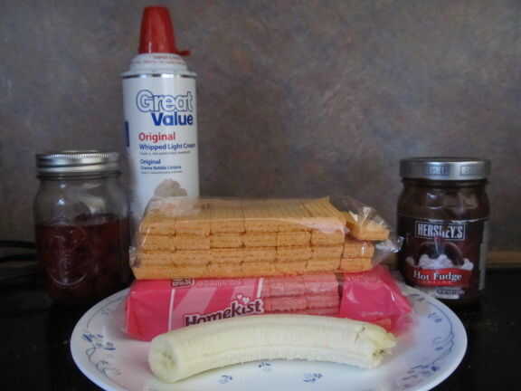 Chocolate, tortitas con sabor a fresa y vainilla componen esta pila de temática.La receta incorpora las partes más sanas de una fractura de plátano (fruta y frutos secos) y deliberadamente evita entrar en jarabe de chocolate, caramelo o malvavisco. Q