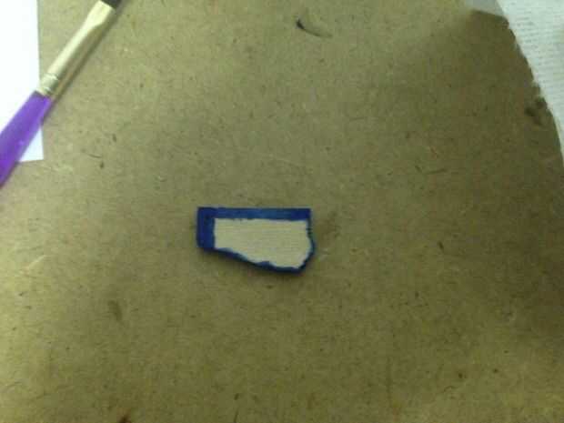 ¡ MUY IMPORTANTE! Antes de empezar a pintar, perfore un agujero en la esquina de su fragmento, de esa manera se puede lijar la rugosidad y la pintura en el agujero, así no se destaca. Ahora que se hace el agujero, podemos empezar inicio de pintura pintando el "marco", lados y trasero. Una vez que se seque, pintar en blanco para el signo. Cuando que se seca, utilice la pintura negra y pintura o las palabras en el letrero, lobo, o lo que quieras! Nota: es una buena idea tener una taza de agua a la mano para lavar el pincel entre los colores y un tejido o una pieza de papel higiénico para secar.