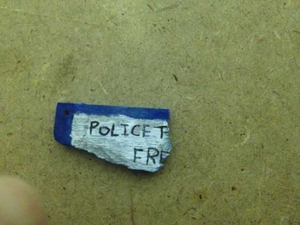 El tramo final! Esta es probablemente la parte más delicada. ¿Has visto cómo el fragmento TARDIS se veía un poco vintage o dañado? Podemos hacer eso. Toma tu pincel y poner una muy pequeña cantidad de pintura negra, como si apenas se tocar la pintura. Ahora, muy rápidamente, sumerja el cepillo en agua. El efecto es un regado abajo negro que deja un tono tenue que da nuestra pieza el empuje extra para hacerla completa. Ahora a pintar el borde del panel blanco, como se está exponiendo. Después de que se seque, poner sobre la capa transparente si lo tiene.