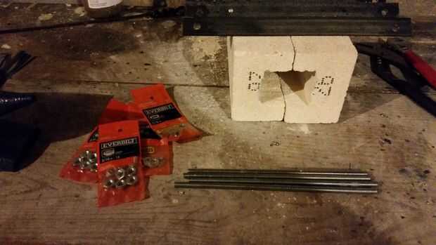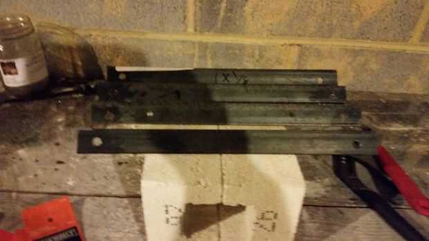 2 agujeros perforados en ambos extremos de un lado de cada población de ángulo. El caldo debe sobresalir aproximadamente 1 1/2" más allá del ladrillo.