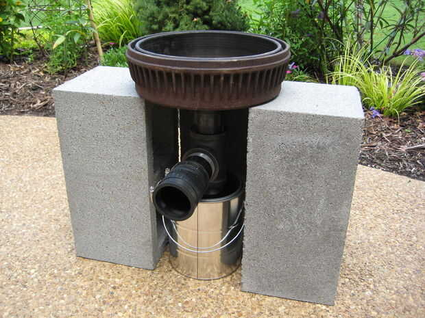 En vez de tapado el tubo inferior, utilizamos una lata de pintura llenada de agua la ceniza y mantener el aire del pelo secador de escapar por la parte inferior.