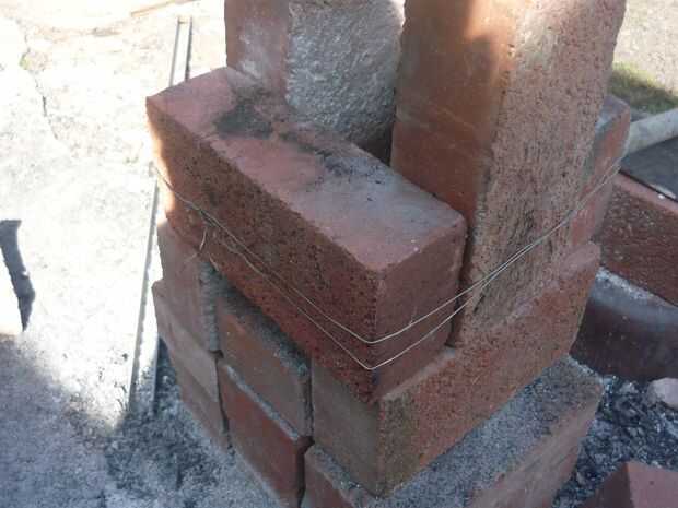 Conducto de cinta la manguera a la tubería. Luego apuntalar la tubería con algo (como ladrillos extras) para que al final se enfrenta a la apertura en el lado de la fragua que designa como la parte de atrás. Enrolle el cable alrededor de los ladrillos de la parte superior 4 y apretar tanto como usted puede. Está sobre él. La abertura en la parte superior se utiliza para cargar combustible carbón de leña/lo que sea que utilizas.
