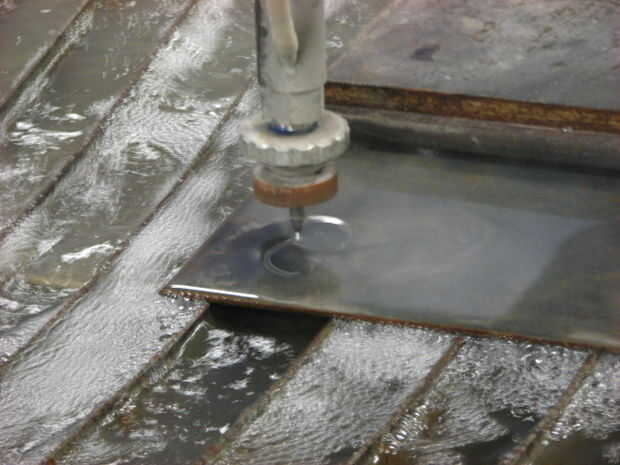Le cortamos una pequeña placa con un orificio de diámetro de 1,27" en el centro. Esta placa nos permite montar la tubería de hierro negro en la parte inferior del tambor de freno.