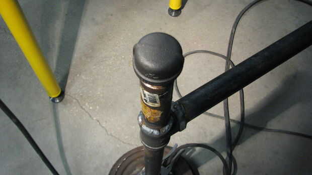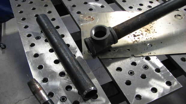 -Soldar el brazo del soplador a la t de modo que forma un ángulo de 90° con el tubo del tambor de freno...