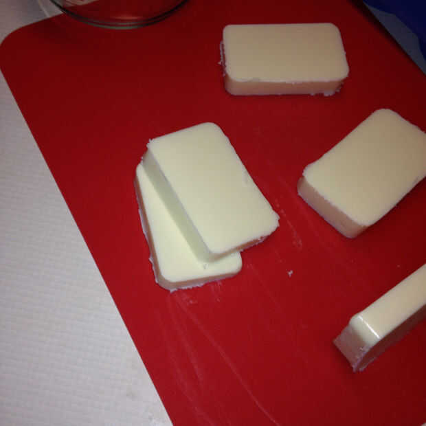 Coloque el jabón en cubos en un recipiente de microondas seguro.