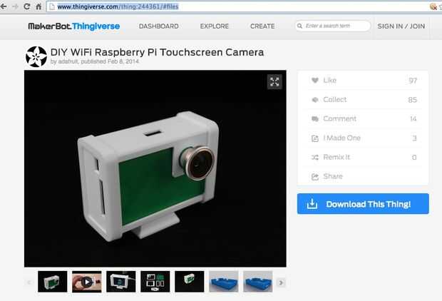 Descargar este archivo de modelo 3D STL y ajustar la cámara puede convertirse en un Raspberry Pi shell modelo archivo descargar ubicación http://www.thingiverse.com/thing:244361