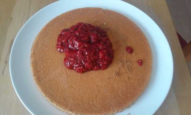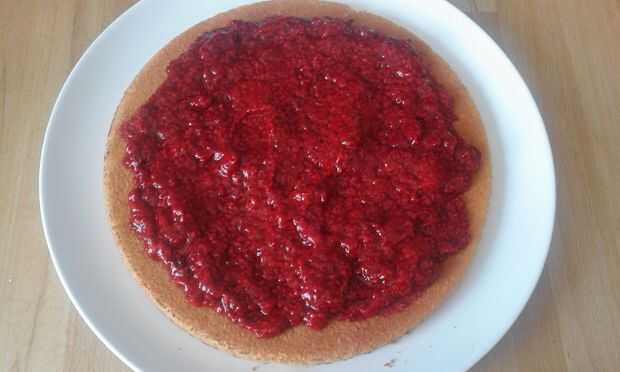 Ahora uso el rasberrys y poner en la primera capa de la torta. (cuadro 1-3)