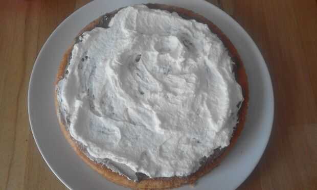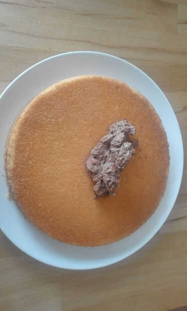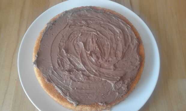 Vierta la crema de chocolate en la segunda capa de la torta.