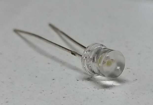 Para el LED blanco: I corte y alisado de la parte superior del led (blanco) para tener un ángulo más amplio y más difusión de la luz.