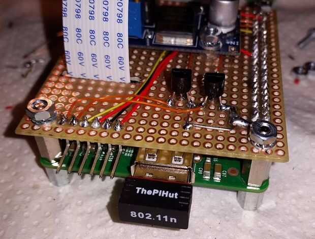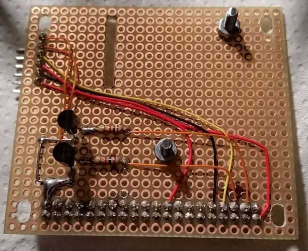 Poner el convertidor de alimentación (12V -> 5V), los transistores NPN y las resistencias. (imagen de fritzing de cf en el paso anterior).
