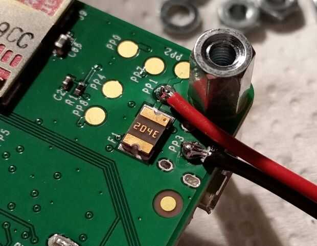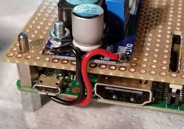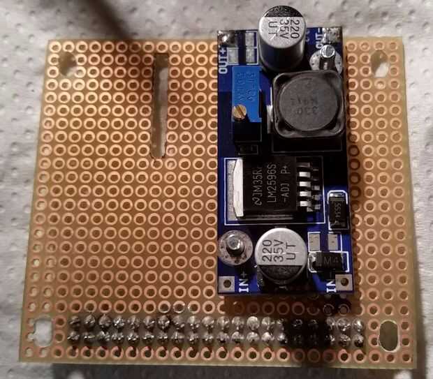 Soldado en el IPC, los cables y conectar en la salida del convertidor. En la entrada, hay una fuente de 12V de mi garaje.