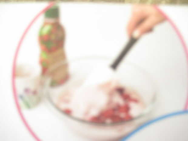 Mezclar el yogur y el jarabe hasta que se mezclan. Añadir las frambuesas con cuidado.