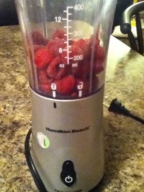 Añadir 3/4 taza de frambuesa a su licuadora.