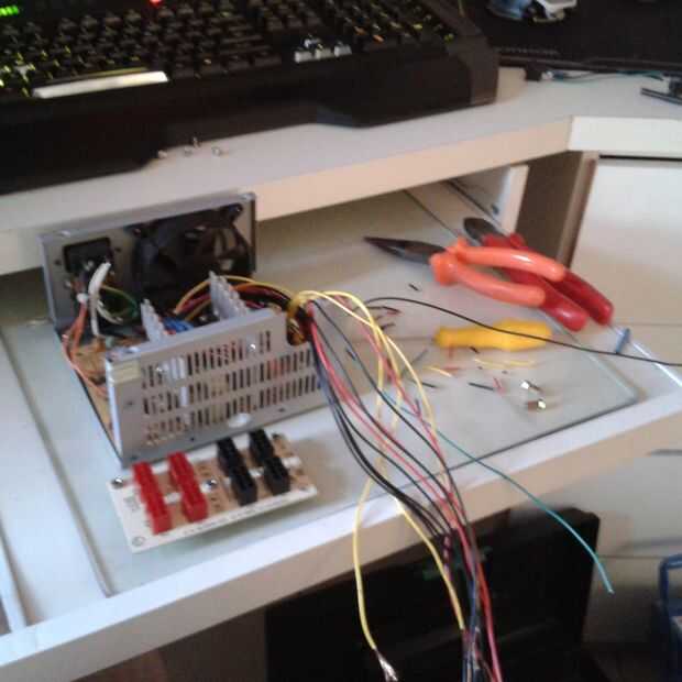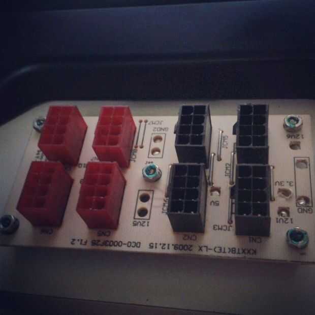 A intenção también era decriptar cada artículo o menos original possível. Assim, retirado de uma fonte Thermaltake de 850W, surgiu una placa de conectores modulares. Placa esta adaptei numa fonte de proyecto genérico, como pode ser visto nas imagens.