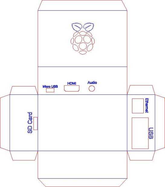 Cuando trabaje en mi trabajo de curso GCSE ordenador ciencia, que implicada Pis de frambuesa me pidieron crear un caso de uso que podría ser corte del laser de tarjeta para el resto de la clase a utilizar. Encontré este caso en internet, que sí mismo fue basado en este caso de la frambuesa Pi modelo B, lamentablemente fue un archivo PDF de mapa de bits que no habría funcionado muy bien con el cortador del laser. Para combatir esto el PDF como una plantilla y sobre la parte superior de la misma en diseño 2D, me corte el contorno y había grabado las líneas de doblez y texto y también mejoró el agujero de ventilación con el logo de la Raspberry Pi.