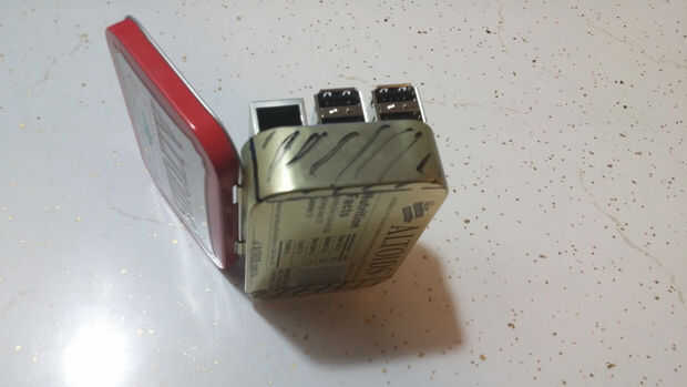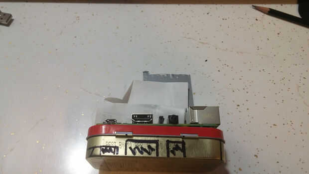 - Retire el Raspberry Pi, luego envolver la base de la caja con cinta aislante para el aislamiento.